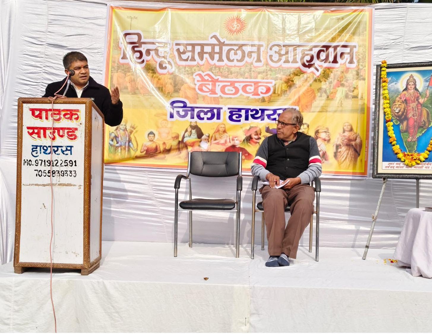 हाथरस। जिले में हिन्दू सम्मेलनों के जागरण हेतु जनपद भर में यात्रायें निकलेंगी।इन यात्राओं के जरिये हिन्दू समाज मे इन सम्मेलनों के प्रति जागरण किया जायेगा। समाज जागरण हेतु मंदिरों ,समाजिक संस्थाओं , समाजसेवियों आदि द्वारा रथ यात्रा , प्रभात फेरी ,संकीर्तन यात्रायें ,बाइक रैली ,पद यात्रायें आदि के द्वारा हिन्दू समाज से इन सम्मेलनों में बढ़चढ़ भागेदारी का आह्वान किया जाएगा।
