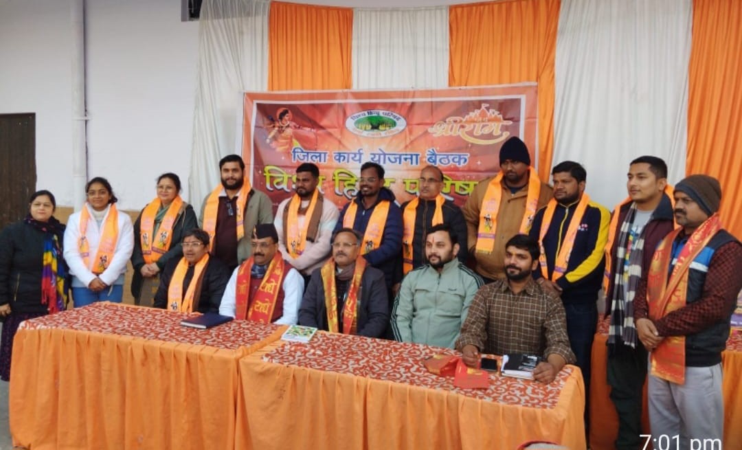 बैठक को संबोधित करते हुए विश्व हिंदू परिषद के प्रांत सह मंत्री मा० अभय प्रताप सिंह ने कहा कि संगठन का मुख्य उद्देश्य हिंदू समाज को संगठित करना, सांस्कृतिक मूल्यों की रक्षा करना तथा समाज में सेवा, संस्कार और सुरक्षा के भाव को सुदृढ़ करना है। उन्होंने हिंदू सम्मेलन को सम्पूर्ण समाज की सहभागिता के साथ भव्यता से सम्पन्न करने का आव्हान किया साथ ही रामोत्सव के कार्यक्रम राम नवमी से हनुमान जन्मोत्सव तक प्रत्येक प्रखण्ड, खण्ड, उपखण्ड व ग्राम समितियों पर आयोजित होगे, इसी के साथ मात्र शक्ति व दुर्गा वाहिनी के नेतृत्व में सीता नवमी के कार्यक्रम भी सम्पन्न होंगे । इसी के साथ आगामी दिनों में जिले भर में सेवा कार्य, संपर्क अभियान एवं जनजागरण कार्यक्रम आयोजित किए जाएंगे। प्रत्येक प्रखंड/नगर में सक्रियता बढ़ाने, युवाओं को संगठन से जोड़ने एवं सामाजिक विषयों पर सजग भूमिका निभाने का आह्वान किया गया। इससे पूर्व बैठक का शुभारंभ भारत माता व श्री राम दरबार के छवि चित्र पर माल्यार्पण व दीप प्रज्ज्वलित कर प्रांत सह मंत्री श्री अभय प्रताप सिंह द्वारा किया गया, अतिथियों का स्वागत पीत वस्त्र पहनाकर अमित कुशवाहा, दीपू वार्ष्णेय अनमोल अग्निहोत्री पद्म सिंह मनोज वार्ष्णेय द्वारा किया गया