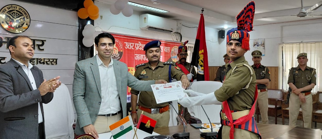 हाथरस। महाकुम्भ 2025 के दौरान उत्कृष्ट, अनुशासित एवं समर्पित सेवाएं प्रदान करने वाले जनपद के चालीस होमगार्ड्स को माननीय मुख्यमंत्री द्वारा प्रदत्त प्रशस्ति पत्र एवं मेडल वितरण कार्यक्रम का आयोजन कलेक्ट्रेट सभागार में जिलाधिकारी अतुल वत्स की अध्यक्षता में किया गया।कार्यक्रम के दौरान जिलाधिकारी अतुल वत्स ने होमगार्ड्स द्वारा प्रस्तुत गार्ड ऑफ ऑनर के साथ सलामी ली तथा उनके अनुशासन, कर्तव्यनिष्ठा एवं सेवाभाव की भूरि-भूरि प्रशंसा की। इस अवसर पर जिला कमांडेंट होमगार्ड्स एवं अपर जिलाधिकारी (न्यायिक) भी उपस्थित रहे। जिलाधिकारी ने चयनित होमगार्ड्स को प्रशस्ति पत्र एवं मेडल प्रदान कर सम्मानित करते हुए कहा कि वर्दी केवल पहचान नहीं, बल्कि गरिमा और विश्वास का प्रतीक होती है, जिससे आमजन में सुरक्षा की भावना उत्पन्न होती है। उन्होंने कहा कि महाकुम्भ जैसे विशाल एवं चुनौतीपूर्ण आयोजन में होमगार्ड्स की भूमिका अत्यंत महत्वपूर्ण रही है। उनकी सतर्कता, सेवा भावना एवं कर्तव्यपरायणता के कारण श्रद्धालुओं को सुरक्षित एवं सुव्यवस्थित वातावरण प्राप्त हुआ। जिलाधिकारी ने कहा कि ड्यूटी के दौरान अनुशासन, संयम एवं सेवा भावना के साथ कार्य करना ही प्रशासन की सबसे बड़ी शक्ति है, जिसे होमगार्ड्स ने पूरी तरह चरितार्थ किया है। यह सम्मान उनके अथक परिश्रम एवं कर्तव्यनिष्ठा की पहचान है।कार्यक्रम के अंत में सभी सम्मानित होमगार्ड्स को शुभकामनाएं देते हुए उनके उज्ज्वल भविष्य की कामना की गई।